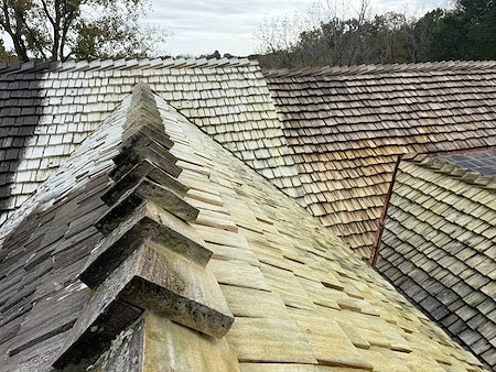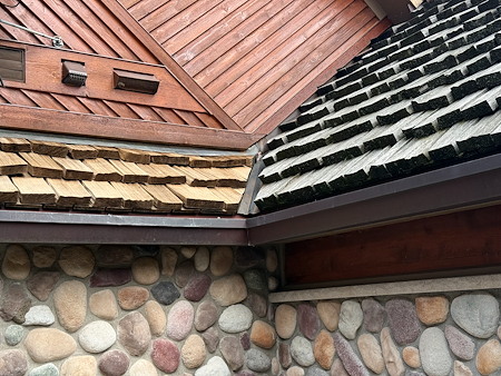 - On-Roof Inspection: We look at exposure, shake thickness, and problem areas. Typical shakes here are about 3/4 inch at the base. We also service premium, thicker shakes on high-end homes.